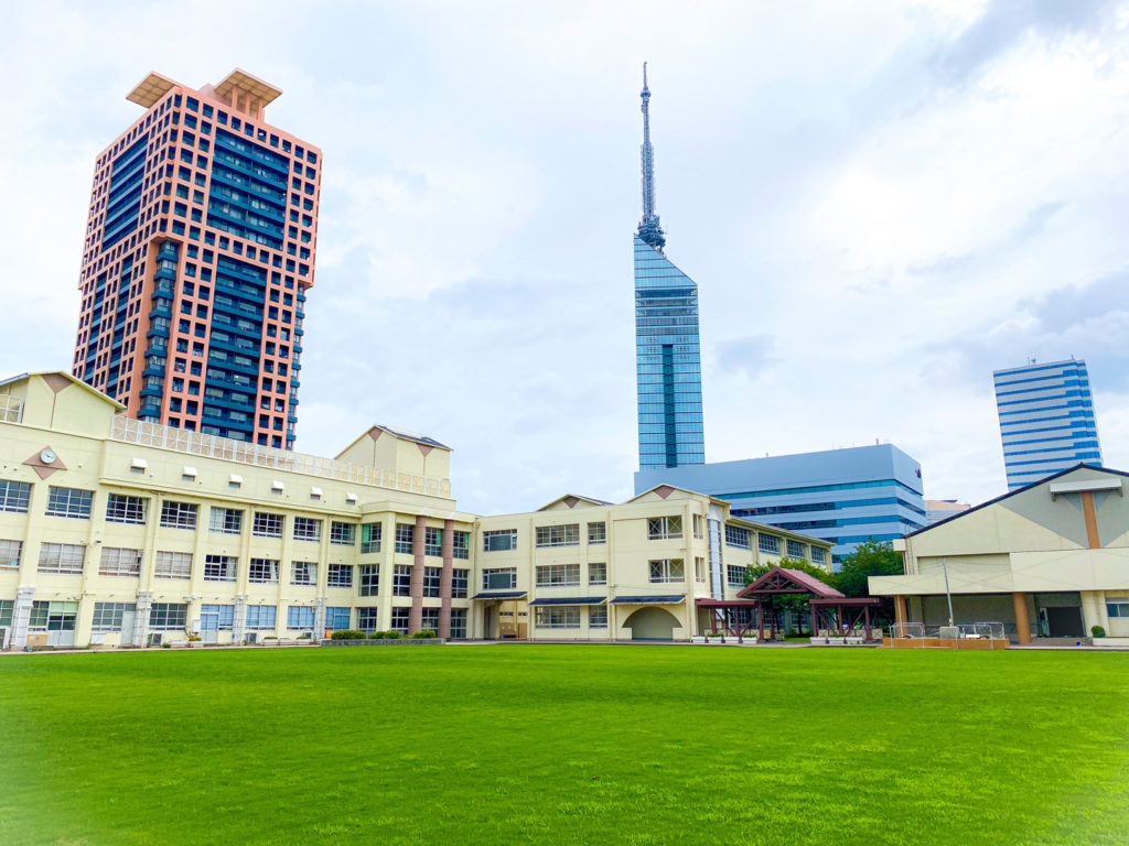 校庭からは福岡のランドマーク「福岡タワー」が見えます。